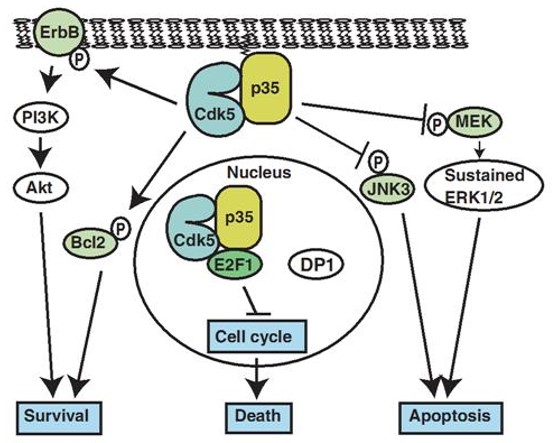 Cdk5 yang diaktifkan oleh aktivatornya yaitu p35 dan p39. Keterkaitan aktivitas Cdk5 dengan p35 dan p39